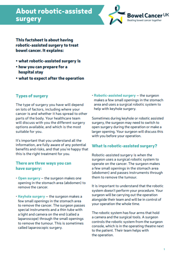 A concise factsheet explaining what robotic-assisted surgery is, how to prepare for your operation and what you can expect afterwards.